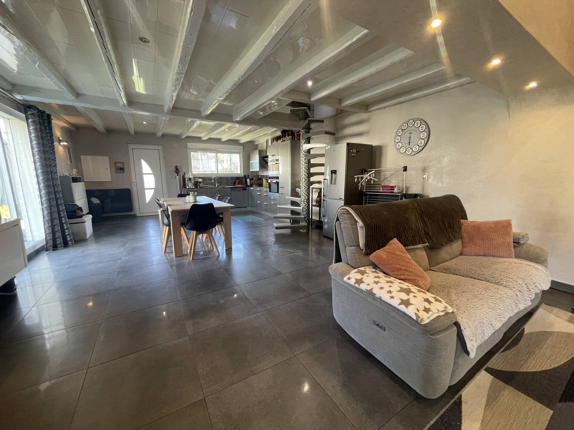 Comprenant une cuisine équipée ouverte sur un vaste séjour, un cellier/buanderie avec un WC.