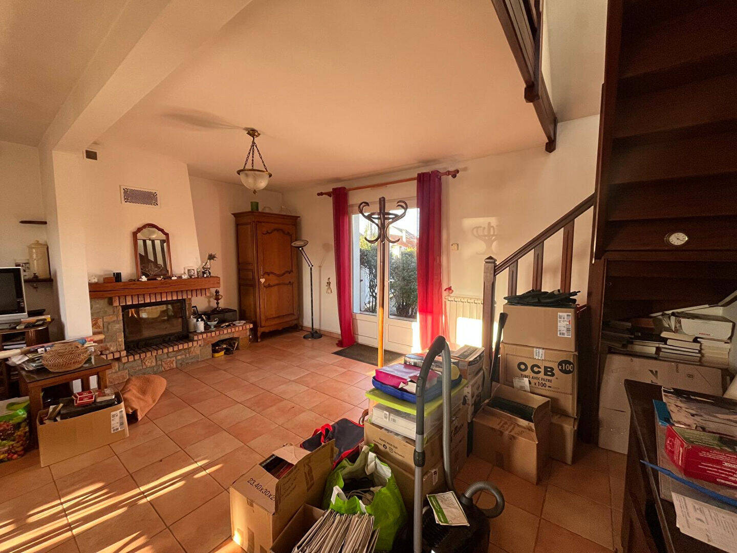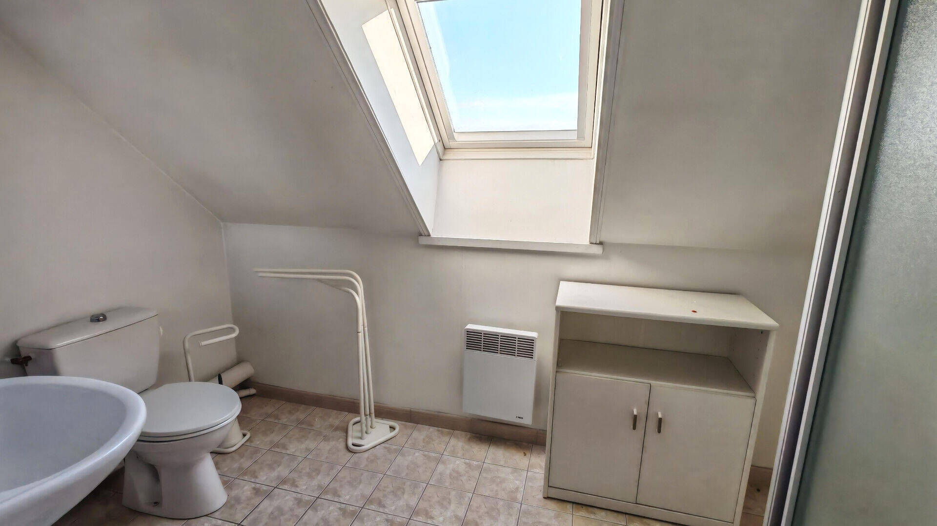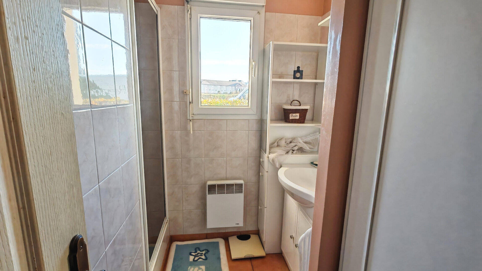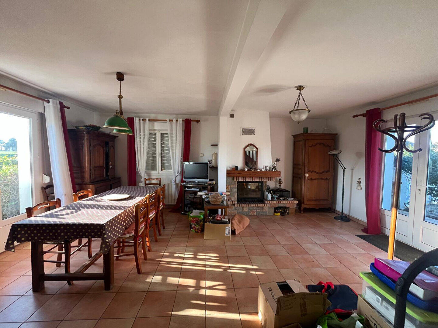 Maison comprenant : Entrée avec placard, cuisine aménagée et équipée, salon-séjour triple exposition avec cheminée, chambre, salle de douche, w-c.