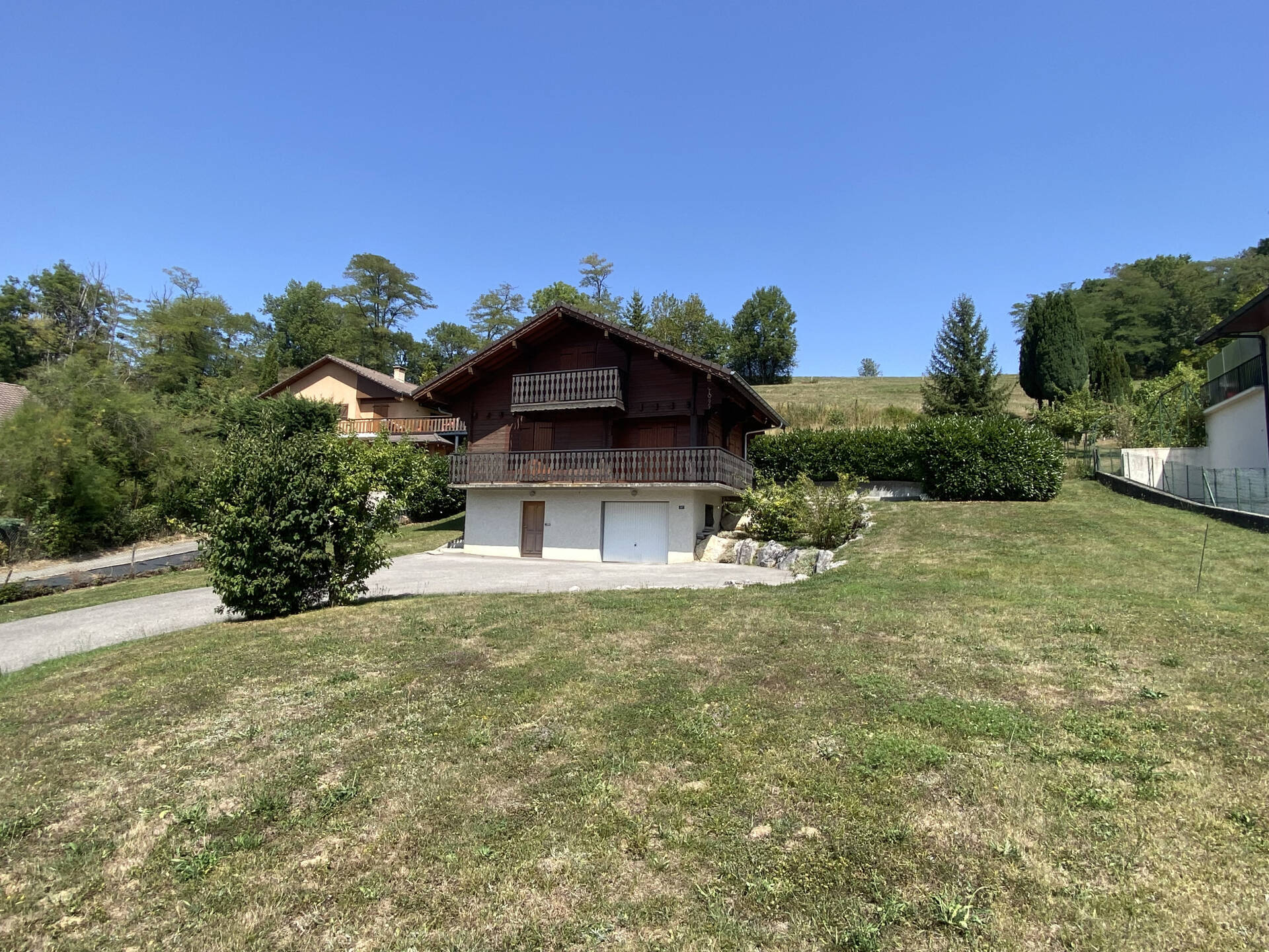 Idéalement situé face au lac de La Balme-de-Sillingy, ce chalet construit en 1999 offre un cadre de vie rare et privilégié, à seulement quelques minutes des accès routiers. Édifiée sur un terrain divisible et constructible de 1 683 m2, la maison comprend une pièce de vie baignée de lumière avec cuisine ouverte, trois chambres, une salle d’eau, des toilettes séparées, une pièce de stockage, un garage et une cave. Les balcons ainsi que la terrasse invitent à profiter pleinement d’une vue imprenable sur le lac, été comme hiver.