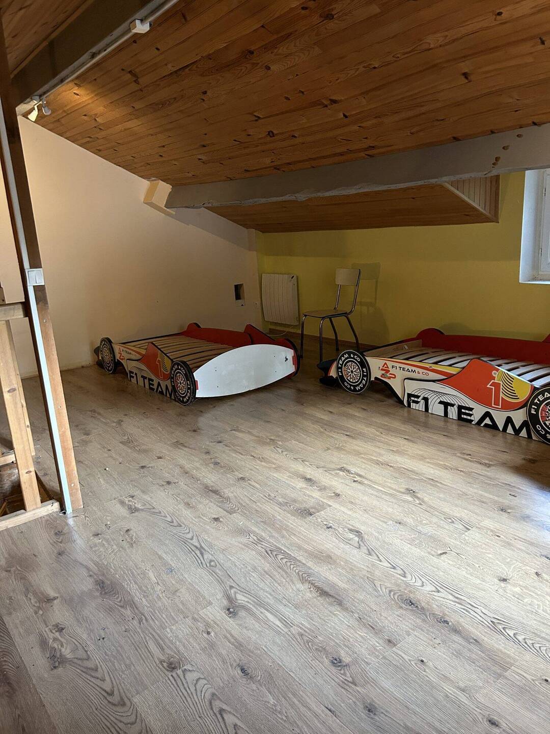 Une surface de 80 m² avec une chambre au RDC, une salle de bains, un séjour avec coin cuisine, un wc et des combles aménagées en chambre.