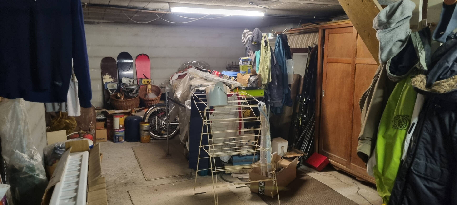 Du rez de chaussée, accès direct au sous sol réparti par moitié à une grande cave ou atelier et au grand garage.