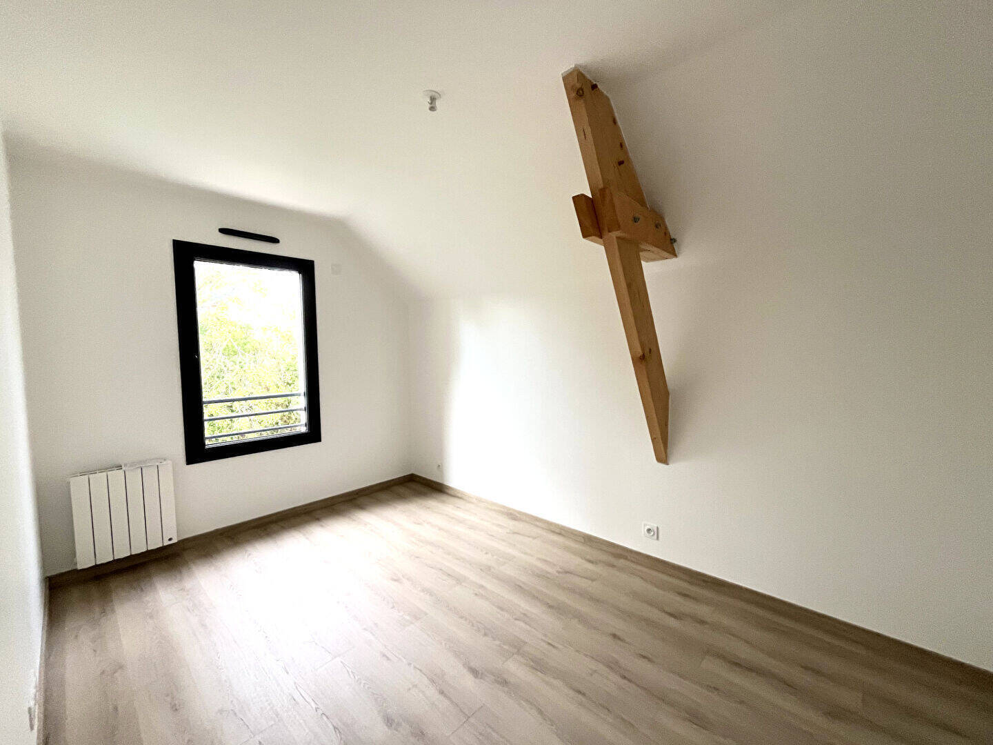 A l'étage, un palier dessert trois chambres ainsi qu'une salle de bains équipée d'une baignoire et d'une douche.