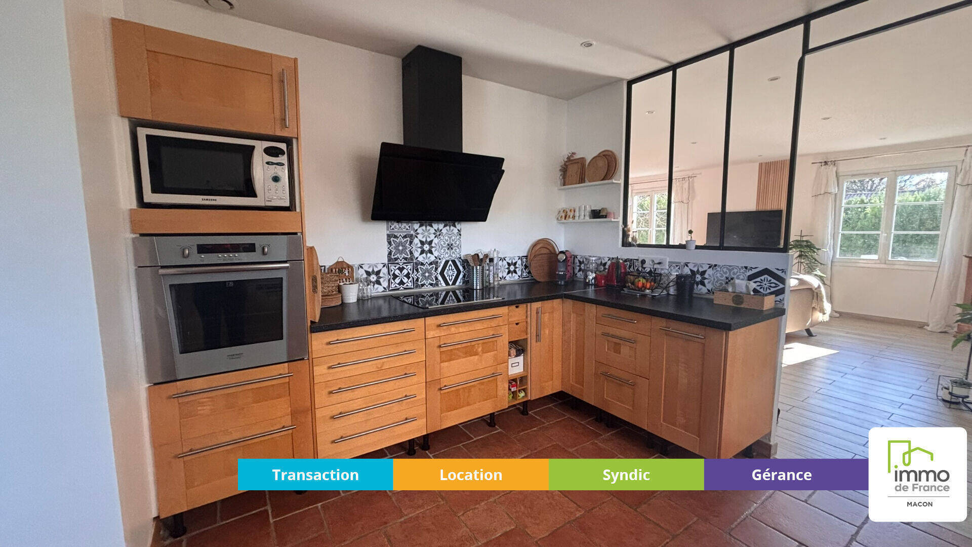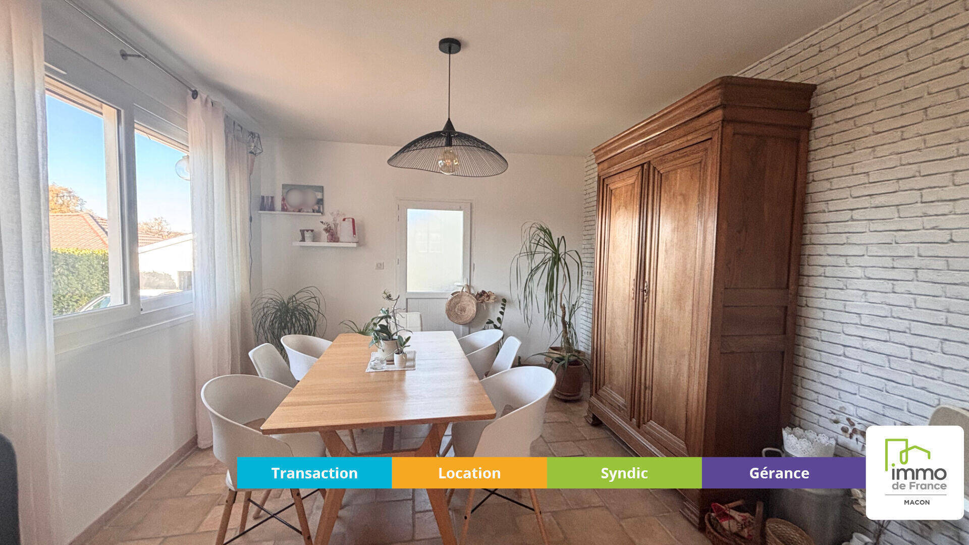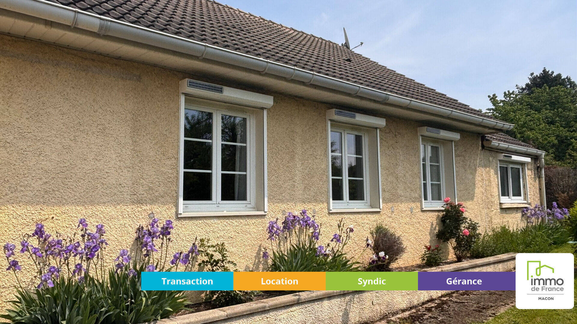 Le tout sur terrain clos et arboré de 1095m², au calme et à seulement 10 min de Mâcon et accès autoroute.