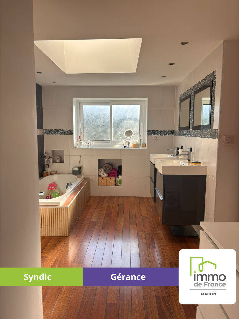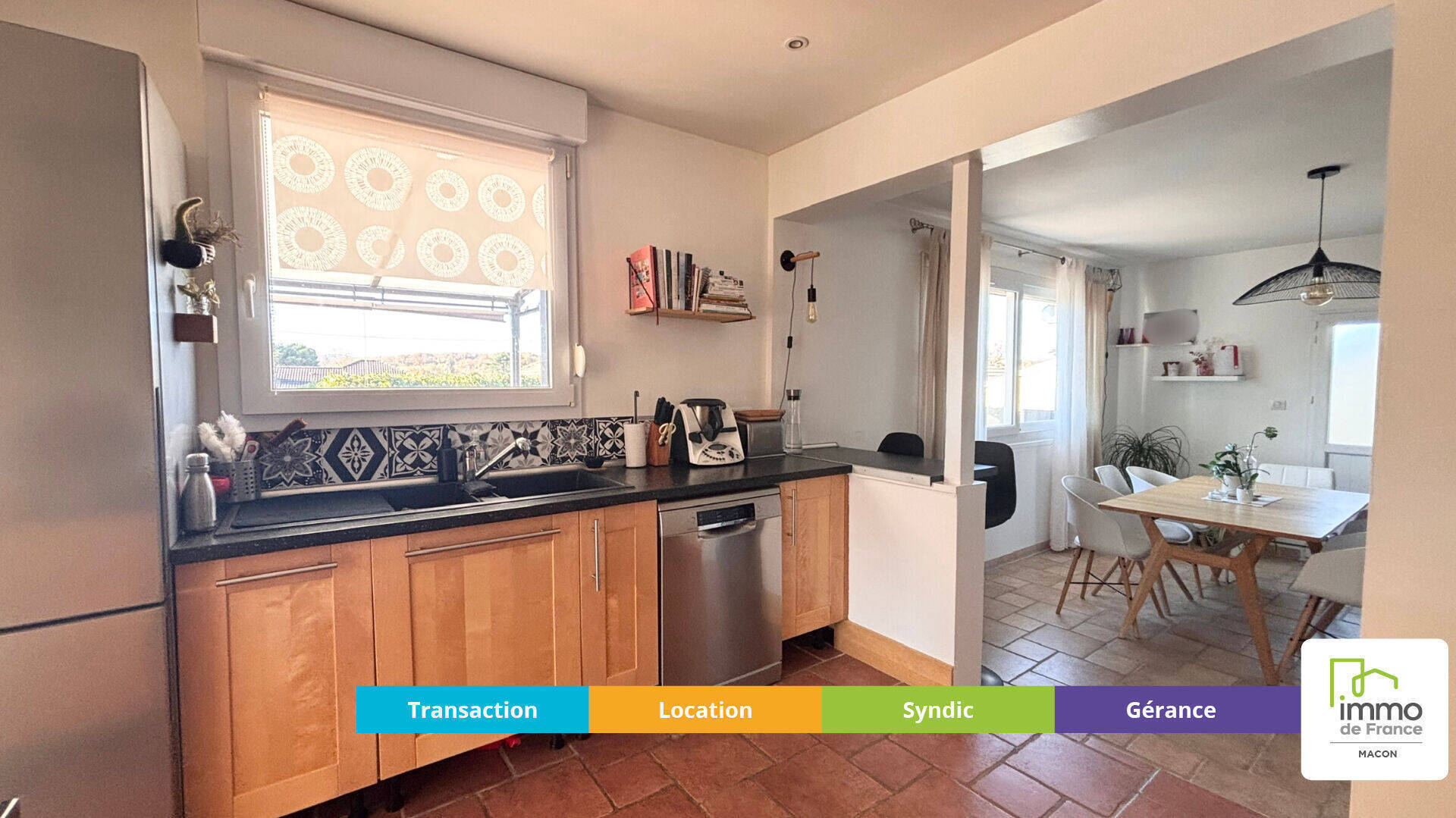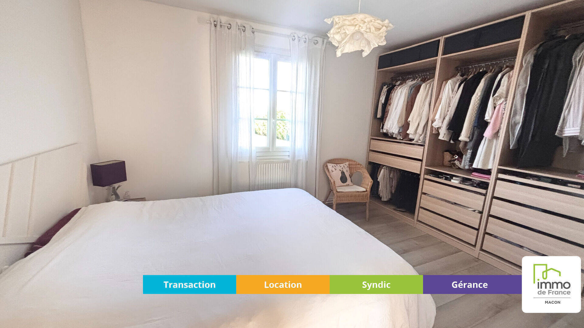 Le tout sur terrain clos et arboré de 1095m², au calme et à seulement 10 min de Mâcon et accès autoroute.