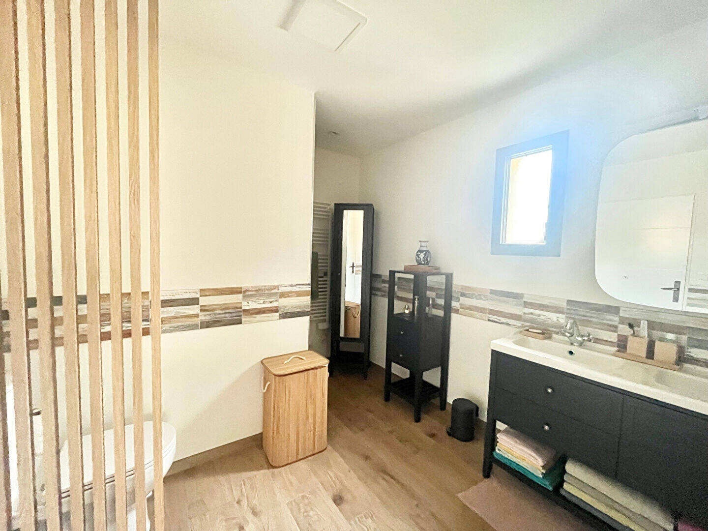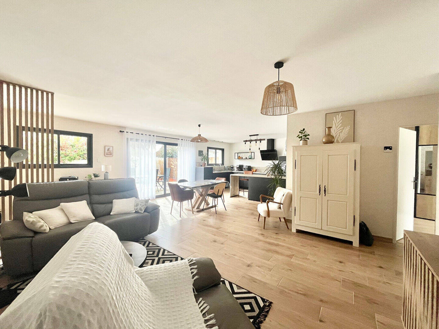 Réalisée avec des matériaux de qualité, cette maison séduit par sa décoration moderne et soignée, dans l'air du temps.