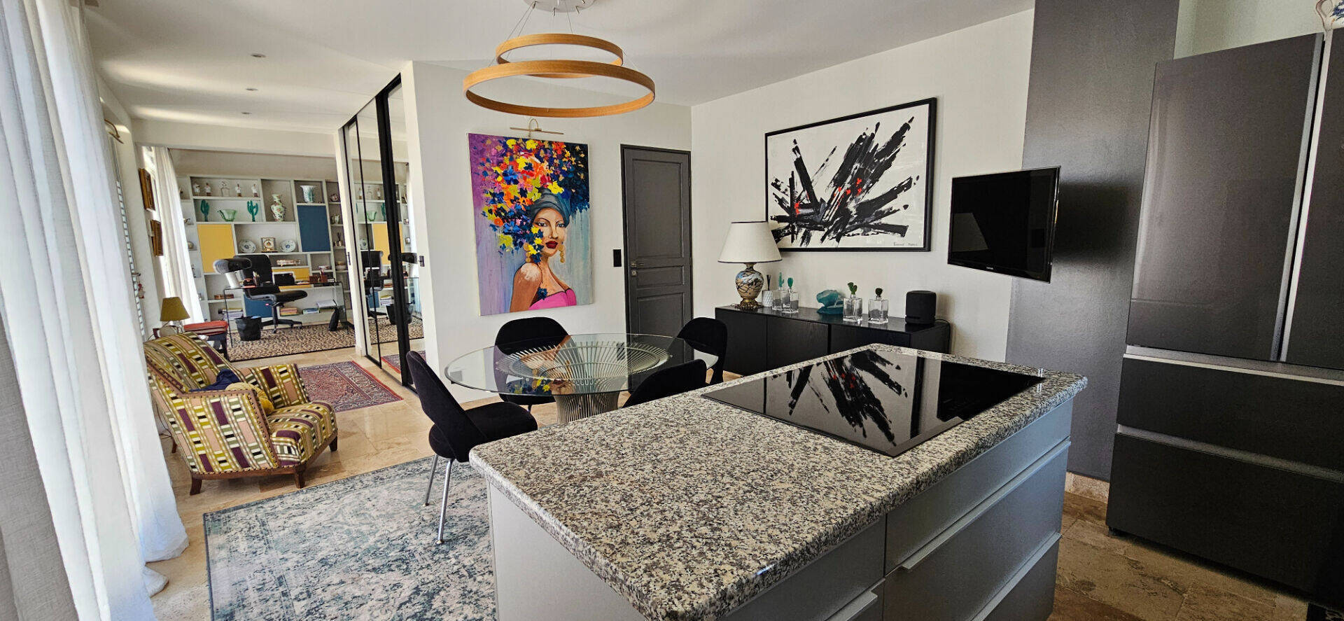 Vous y découvrirez un spacieux double séjour avec cheminée, parfait pour vos moments de convivialité, ainsi que quatre chambres dont deux magnifiques suites parentales. L'agencement est complété par une cuisine moderne et entièrement équipée