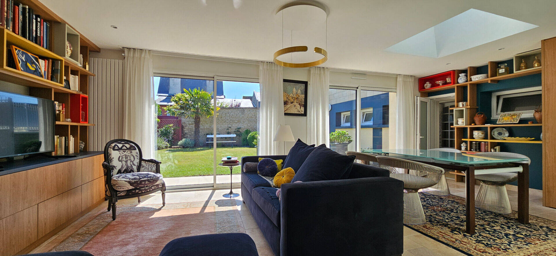 Vous y découvrirez un spacieux double séjour avec cheminée, parfait pour vos moments de convivialité, ainsi que quatre chambres dont deux magnifiques suites parentales. L'agencement est complété par une cuisine moderne et entièrement équipée
