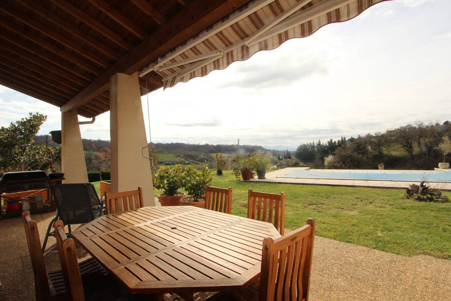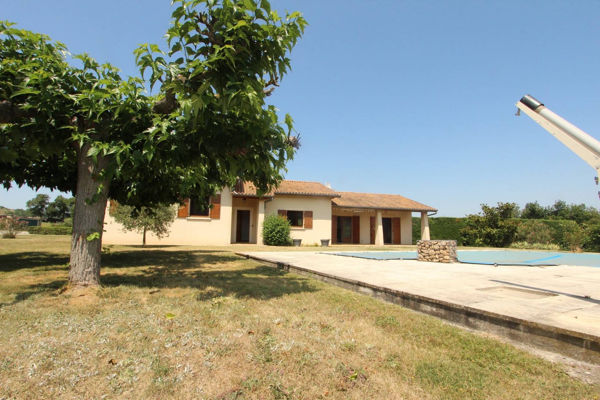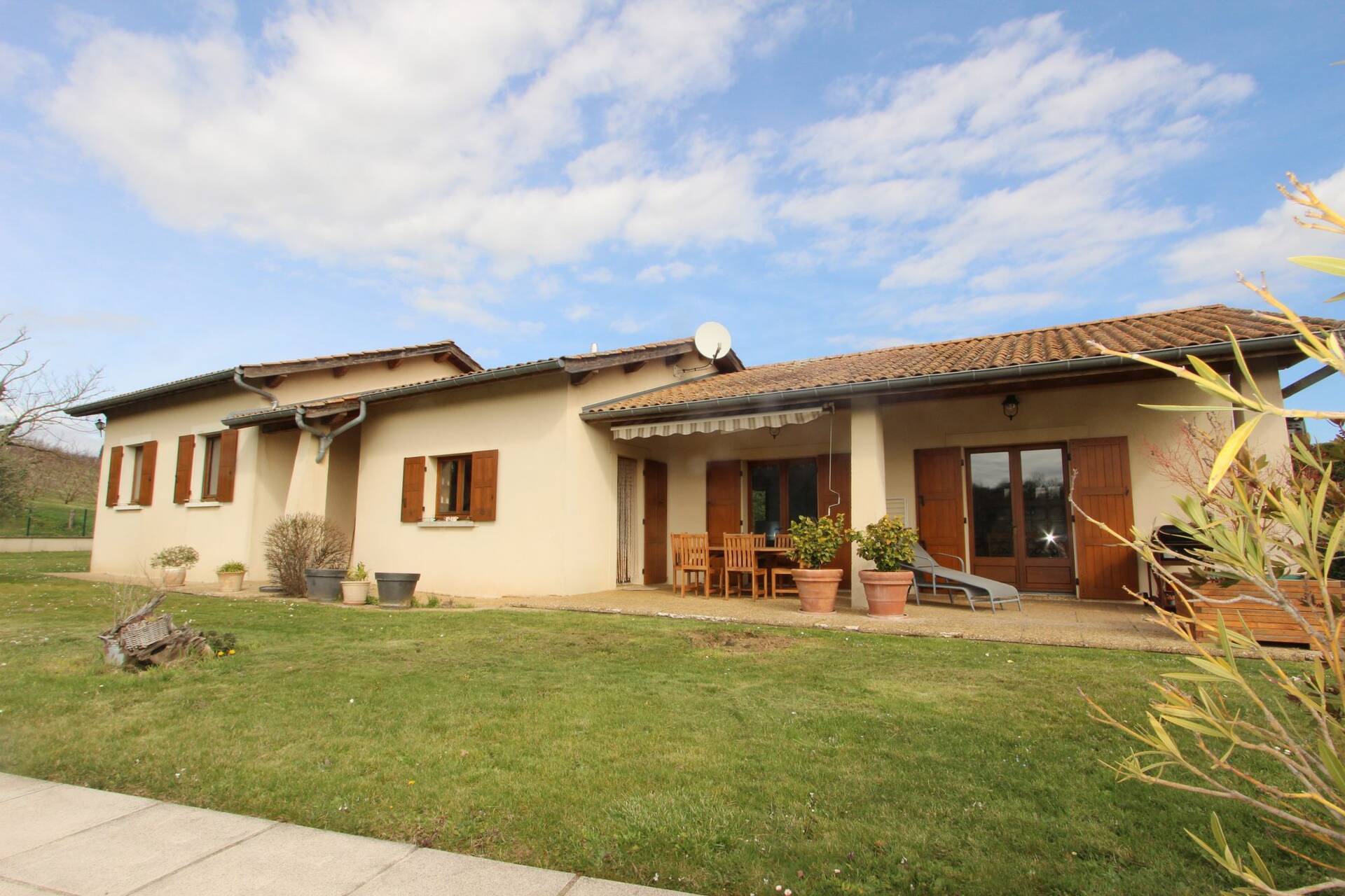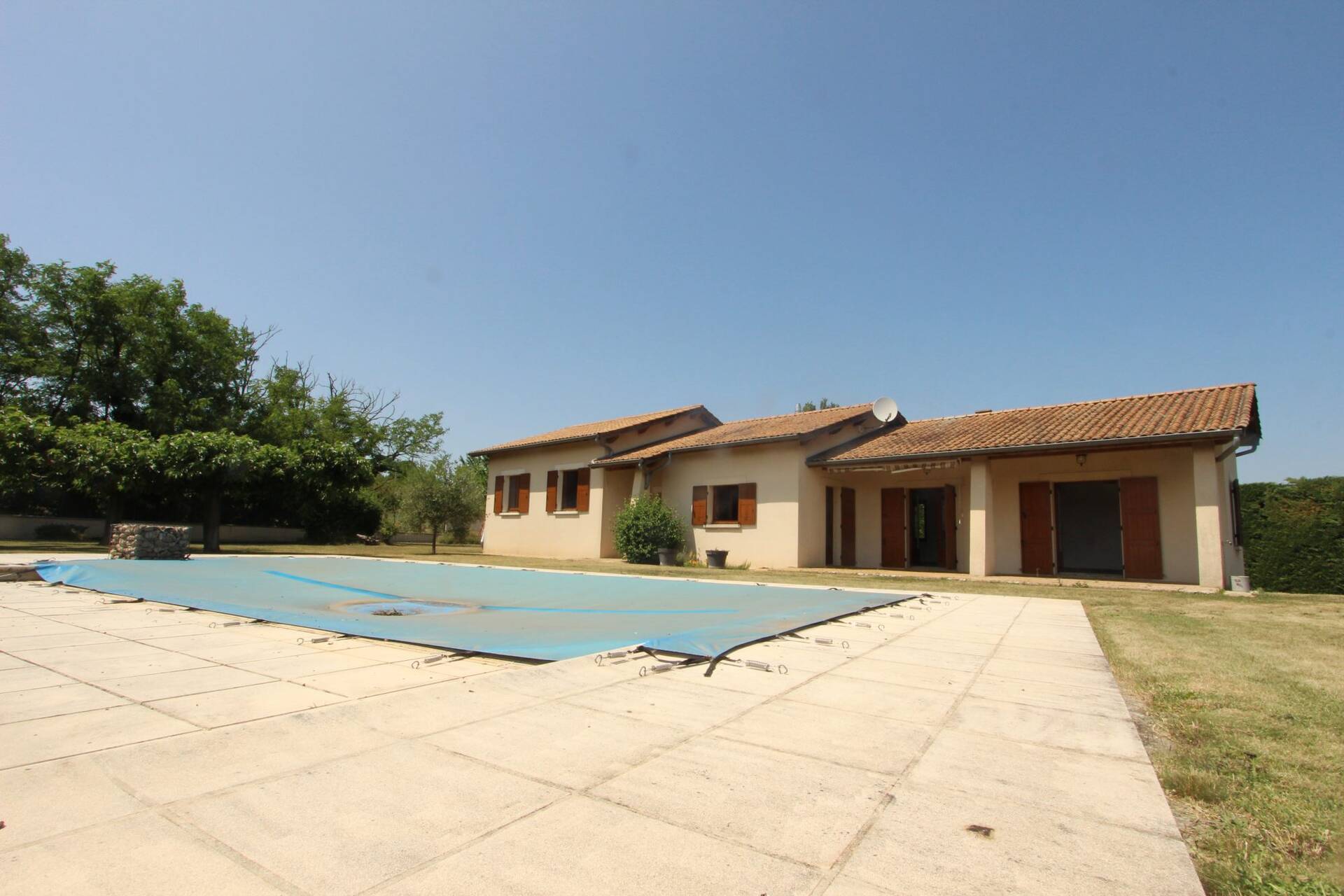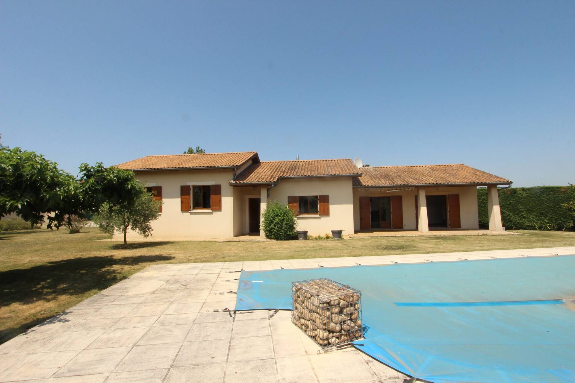 Plongez dans un havre de paix et de tranquillité avec cette magnifique maison de campagne, construite en 1984, offrant une surface habitable de 140 m² sur un terrain de 6175 m². Cette propriété plain-pied, située dans un cadre verdoyant, est prête à accueillir votre nouvelle vie. Imaginez-vous dans un séjour de 46 m², baigné de lumière naturelle grâce à ses ouvertures en bois double vitrage. Cet espace chaleureux et convivial est parfait pour les soirées en famille ou les réunions entre amis. La cuisine aménagée, adjacente au séjour, vous permet de cuisiner tout en profitant de la compagnie de vos proches. La maison dispose de 5 pièces, dont 3 chambres confortables, une salle de bains et deux WC indépendants. Le jardin, soigneusement entretenu, offre un espace de détente et de loisirs inestimable. Profitez de la terrasse pour vos repas en plein air ou simplement pour vous détendre en admirant la vue dégagée sur la nature environnante. Le chauffage individuel assure un confort optimal tout au long de l'année. La propriété dispose également d'un stationnement intérieur pour 2 véhicules, d'une cave, d'un grenier et d'un sous-sol, offrant ainsi un espace de rangement supplémentaire. La piscine, avec son revêtement en béton carrelé et son système de filtration à cristaux, est un véritable joyau pour les journées d'été. Le terrain est également piscinable, offrant ainsi des possibilités d'agrandissement ou de rénovation. Cette maison de campagne, bien que nécessitant quelques rafraîchissements, possède un potentiel immense. Imaginez les possibilités de rénovation et de personnalisation pour créer votre maison de rêve. Que ce soit pour une résidence principale ou une maison de vacances, cette propriété est un véritable trésor. À quelques minutes en voiture, vous trouverez plusieurs commodités pratiques, telles que des écoles, des commerces et des services de santé.