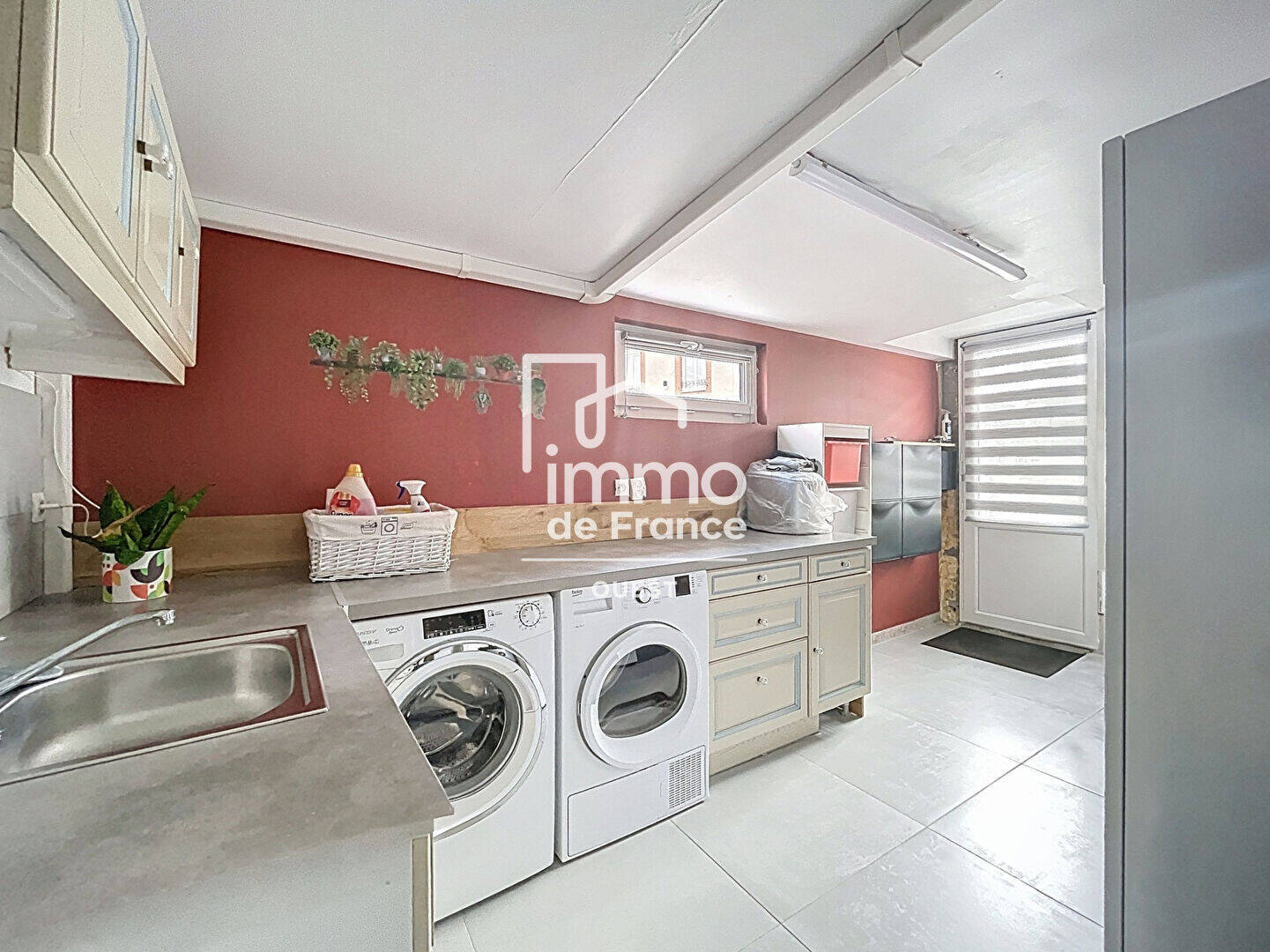 On retrouve également une cave et son grenier pour profiter de stockage, ainsi qu'une buanderie équipée de meubles et son accès direct vers l'extérieur.