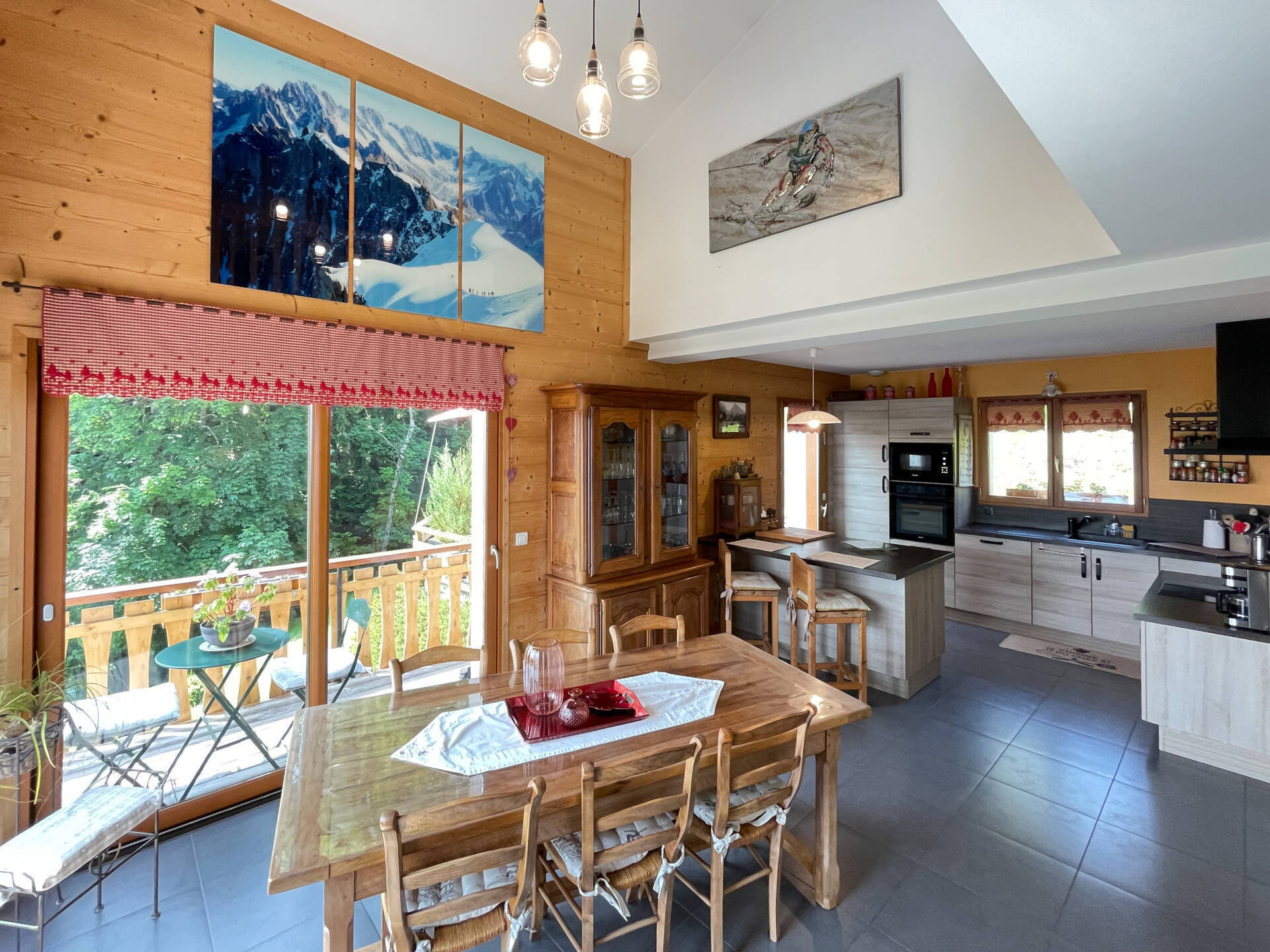 Celle-ci est composée d'une vaste pièce de vie séjour cathédrale et cheminée à bois avec cuisine américaine Schmidt donnant accès à une magnifique terrasse plein Sud de plus de 40m2 avec vue sur tout le massif Mont-Blanc, un cellier/buanderie, une suite parentale avec salle d'eau et dressing, et un wc séparé avec lave-mains.