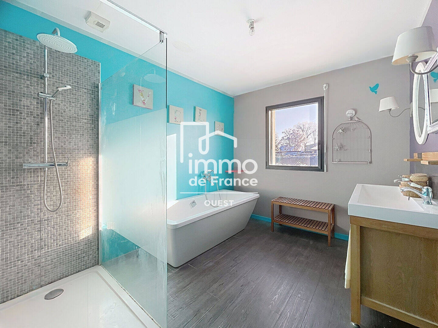 A l'étage, on retrouve trois belles chambres, dont une avec un grand dressing. L'espace sanitaire est pensé familial : double vasque, douche et baignoire sauront répondre à vos attentes!