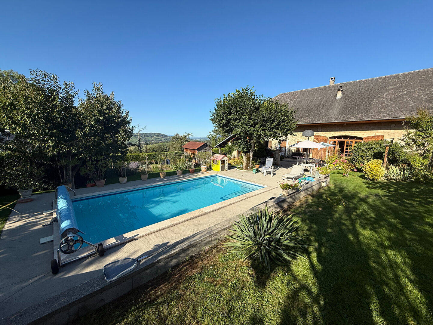 Cette maison dispose de 6 pièces dont 4 chambres spacieuses et lumineuses, d'un vaste salon/séjour avec un coin cheminée chaleureux. Un jardin arboré de 1716 m² avec belle piscine. Une dépendance de 42 m² au sol (partiellement rénovée), complète ce bien et permet d'envisager un gîte, bureau ou un revenu locatif.