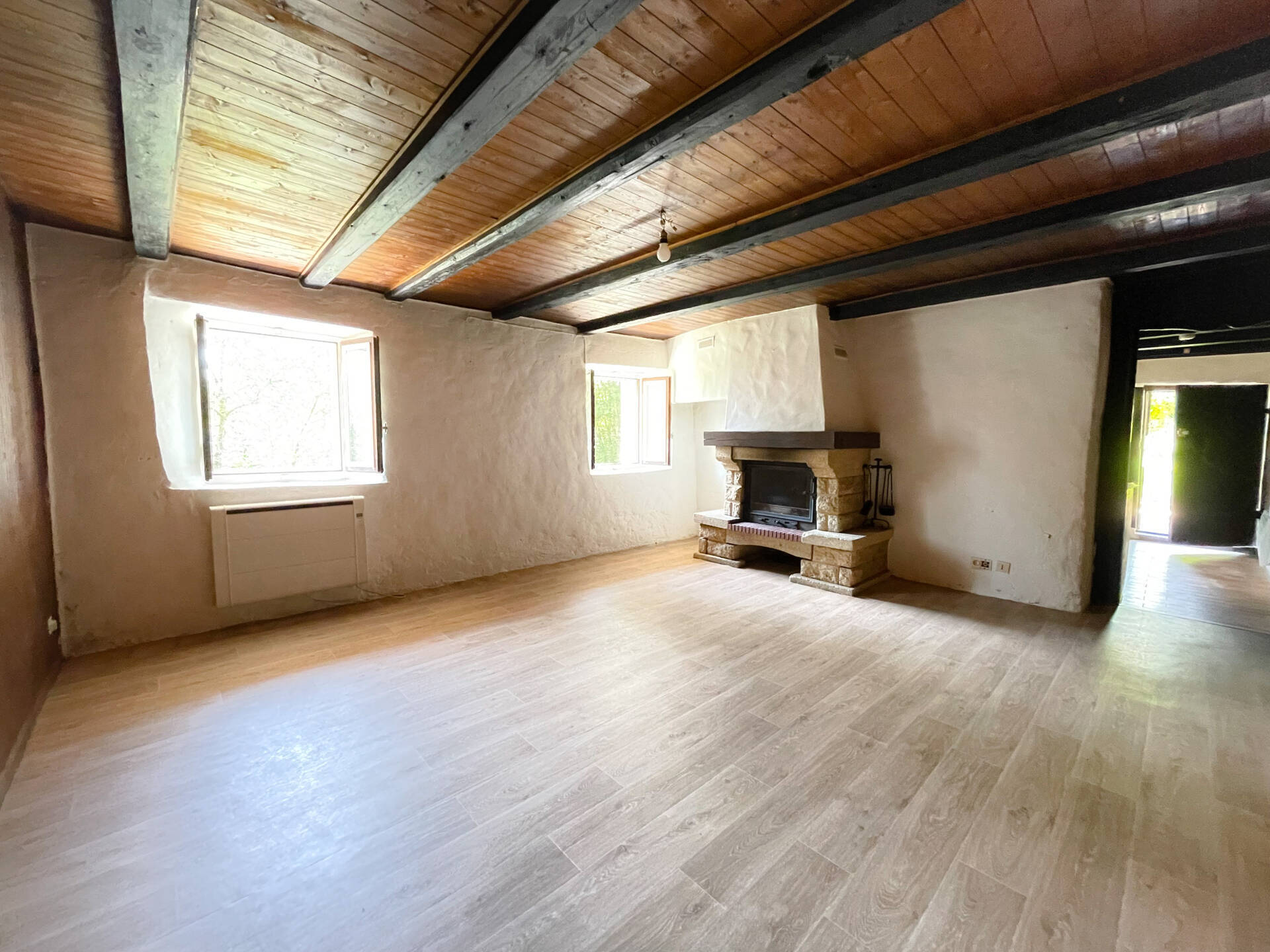 Vous retrouvez un niveau principal en pierre de 64m2 et un niveau supérieur en grange de 86m2 environ, soit 150m2 au total. Une cave en sous-sol complète le bien.