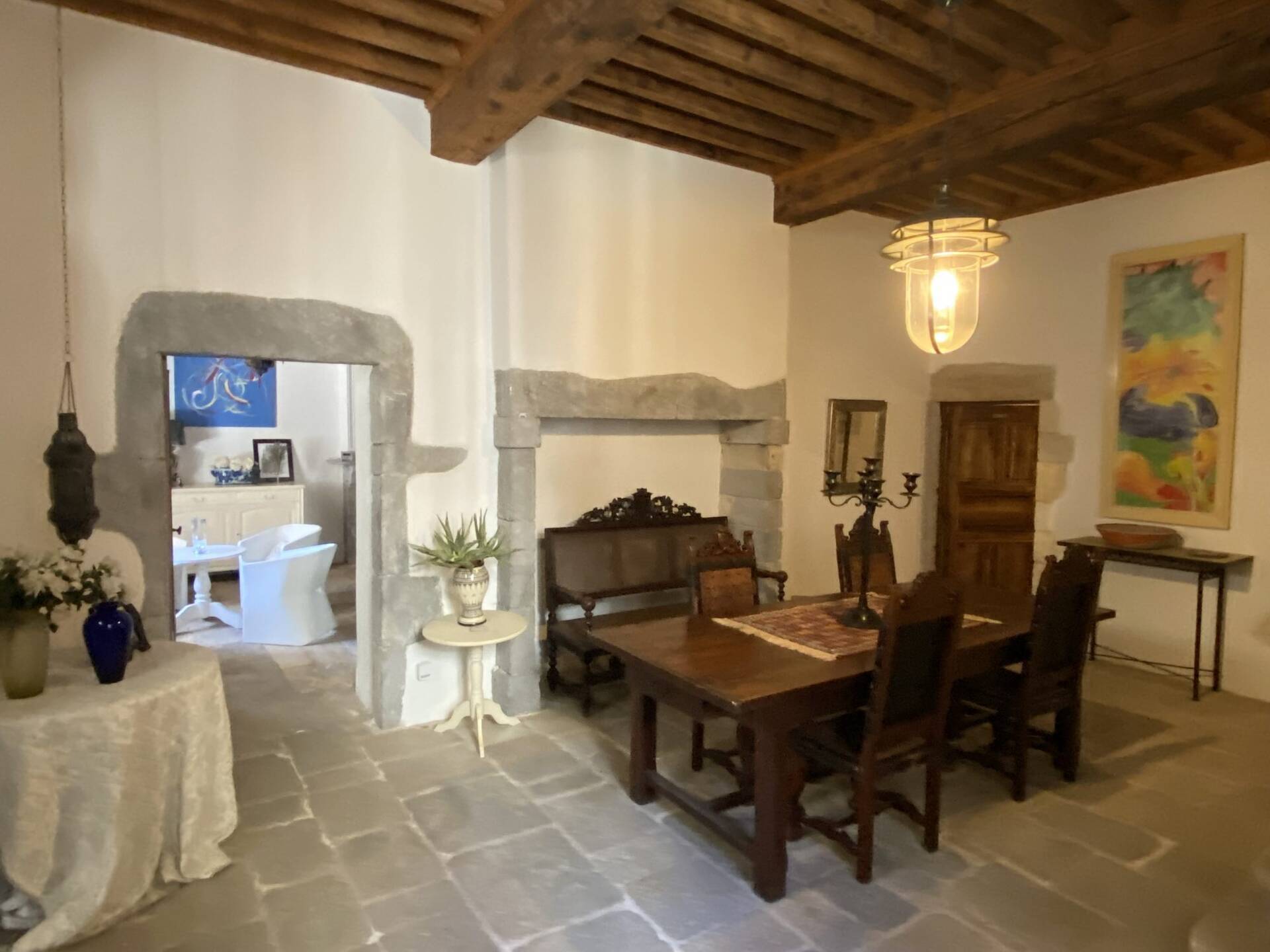 Disposant également de 4 chambres dont une disposant d'un balcon de 7 m2, 2 salles de bains, une majestueuse réception avec ses dalles de pierres son plafond à la Française et son imposante cheminée, une cuisine entièrement équipée, ouverte sur la salle à manger parfaite pour les repas de famille, un vaste séjour sous les toits avec poutres apparentes et vue sur le Château de Vogüé, la rivière et ses falaises..Une immense cave à vin voûtée complète ce bien.