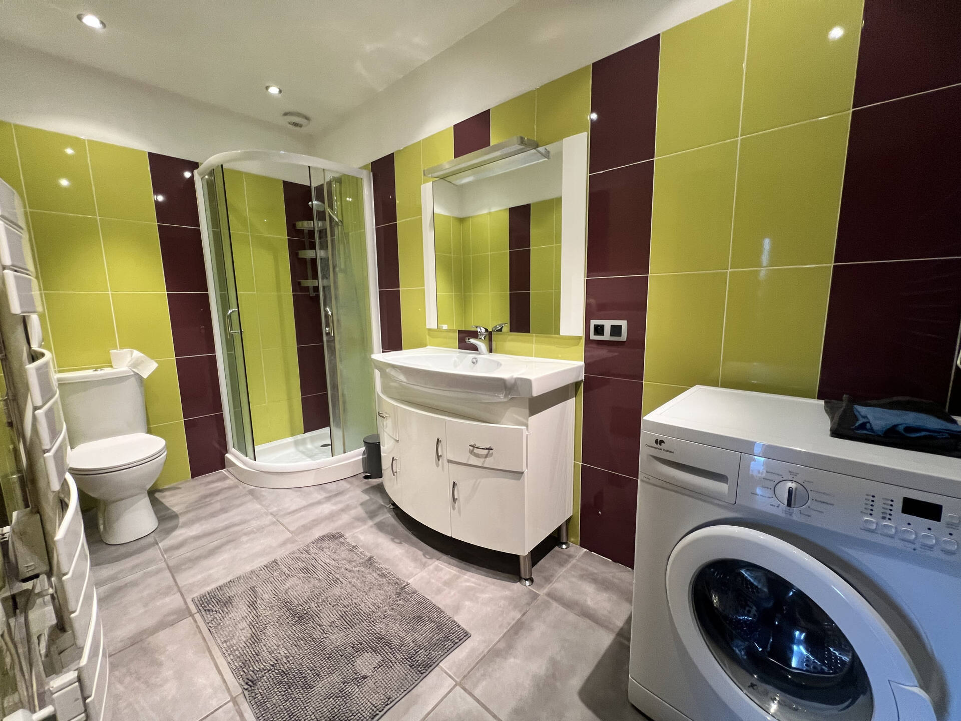Le rez-de-chaussée accueille également deux chambres, ainsi qu'une salle de bain avec baignoire, un WC séparé avec lave-mains.