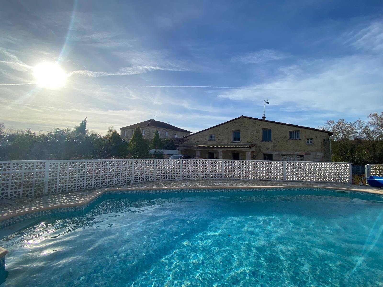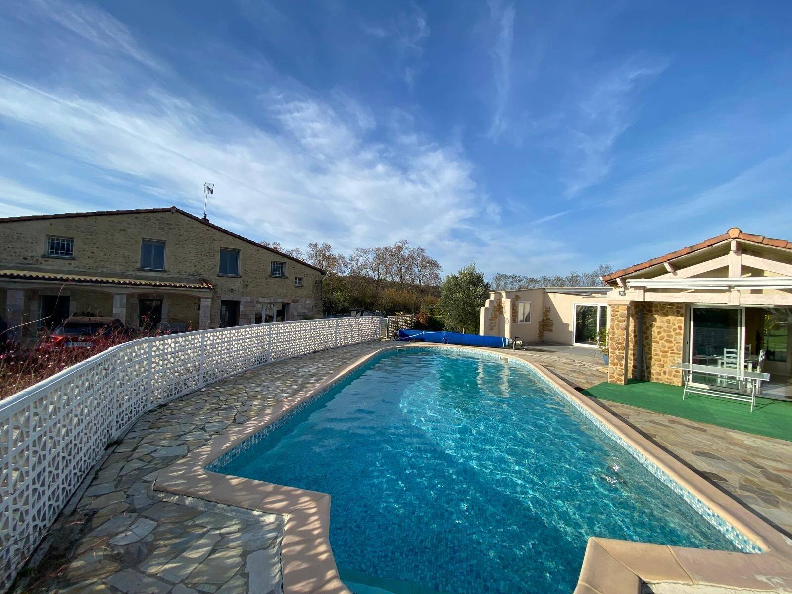 L'extérieur est tout aussi enchanteur avec un jardin luxuriant et une piscine carrelée, construite en 2013, qui vous invitera à des moments de détente et de loisirs. Un stationnement intérieur est également disponible pour votre confort.