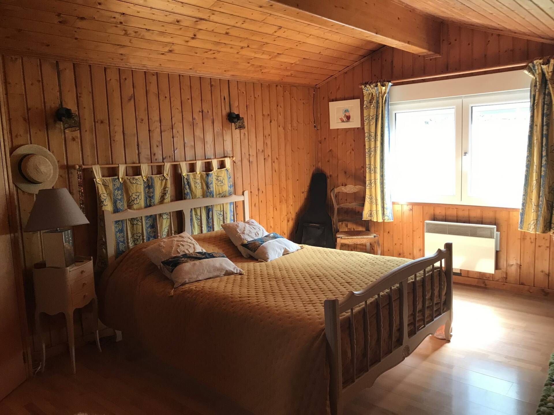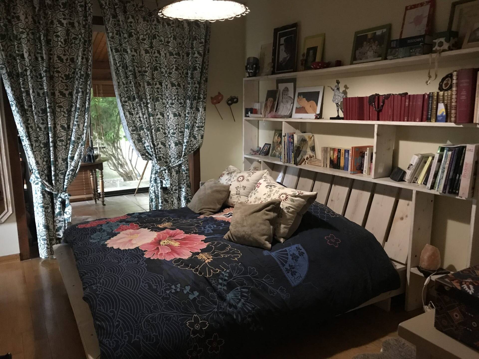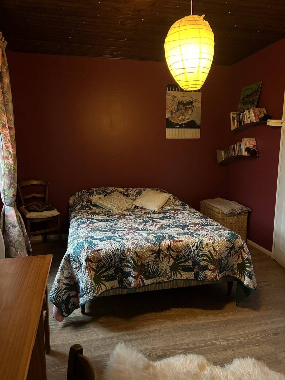 Une chambre de 12 m² donnant sur une véranda de 7 m² et un patio arboré.