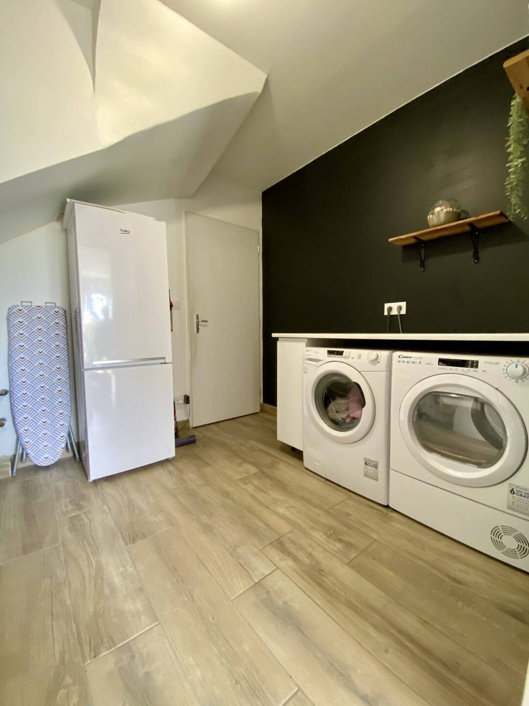 - Rdc : espace de vie de 60 m² avec cuisine équipée, séjour, WC, bibliothèque, cellier-buanderie et terrasse